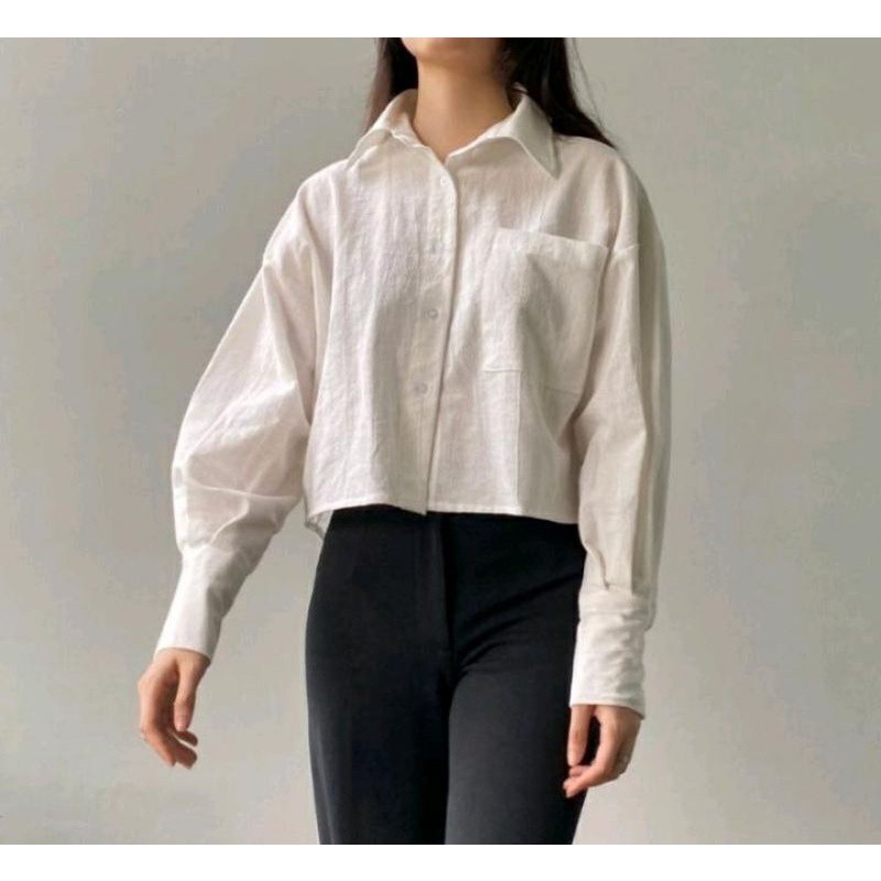 Beli Atasan wanita | kemeja basic crop top | davi shirt | linen crinkle | terbaru di sini