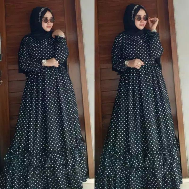 Beli baju dress wanita muslim gamis athena polkadot kondangan terbaru di sini