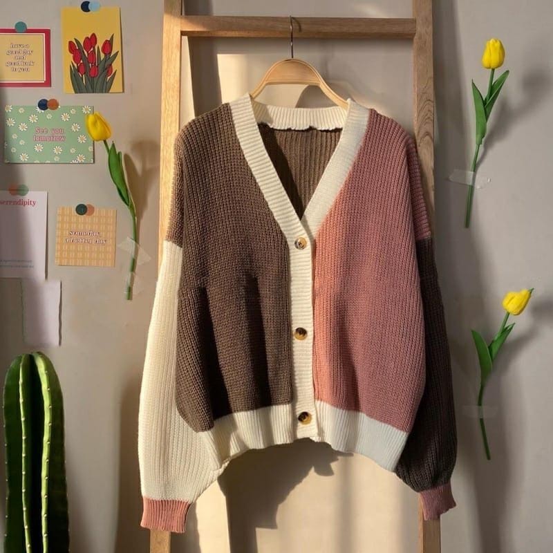 Beli CARDIGAN RAJUT TWIST | OUTER OUTWEAR KNIT MIX WARNA KOMBINASI | CARDIGAN WANITA | CARDI RAJUT TERBARU di sini